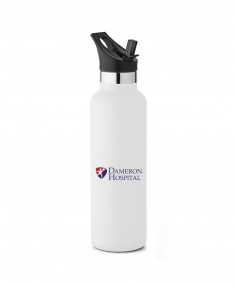 20 oz. Narrow-mouth vacuum-insulated bottle. Features a flip-top straw lid with ergonomic top finger loop. Keeps contents cold for 24 hours. Powder coat finish with copper lining, double wall 18/8 stainless steel, proprietary BPA-free insulated lid. Bottle comes with both screw-on lid and straw lid. 11" H x 2 7/8" Diameter.