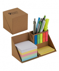 Features 5 colorful sticky flags for page marking, 1 pad of yellow (2" x 3") sticky notes and 5 colors of (3" x 3") note pad cube. Cube made from cardboard. 3 1/2" H x 3 1/2" W x 3 1/2" D