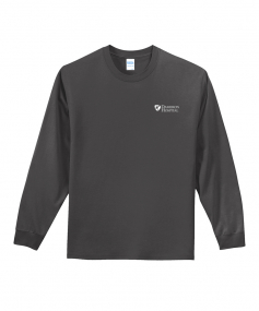 6.1 Oz., 100% cotton with coverseamed neck, shoulder-to-shoulder taping, rib knit cuffs and double-needle hem. Complies with Prop 65.