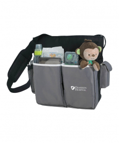 This modern diaper bag is a perfect fit for men and women! The neutral color is ideal for any baby gender and the back pocket is great to insert the changing pad for easy diaper change. It includes a mini bag exclusive design. Complies with Prop 65. 12 3/4" W x 13 1/2" H x 5" D