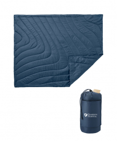 The Wave Recycled Insulated Outdoor Blanket comes rolled up in a carrying pouch measuring 7" x 13". The pouch includes a front slash pocket for quick access to your keys or phone. This lightweight blanket is water-resistant and insulated for extra warmth. Unfolded the dimensions of this blanket are 50" x 60" x 0.25".